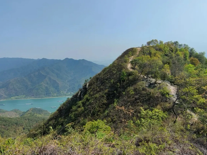 而当我们终于到达龙门顶时,那种成就感与喜悦无与伦比。站在山顶,俯瞰整个羚羊峡,景色如同一幅精美的画卷——山川相连,水波荡漾。