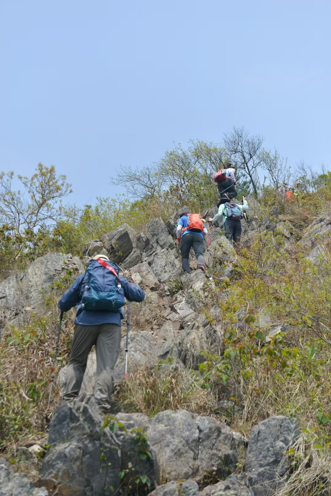 登山初始的路段是比较陡峭的,非常考验新手驴友。我们踏上这一段艰难的但却美丽的旅程,山道两旁是翠绿的树木,春风拂面而来,让我们不由得放慢脚步,享受这一切。