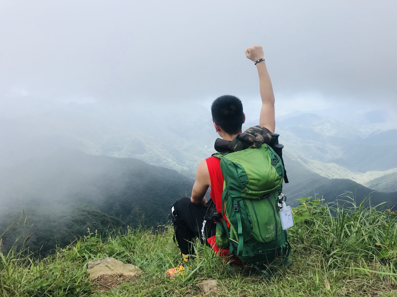 10:30 开始徒步登山,高山漂流方向上山,到达广州第一峰石碑,进入登山径,此段路未经开发,为驴友走出来的原始小路,沿途需攀登斜坡,穿越草丛,务必穿长袖衣裤、遮阳帽、手套,建议带登山杖。