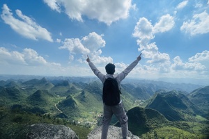 14:40 到达莫六山顶,一览众山小,观看喀斯特地貌,及英西群峰众岭。