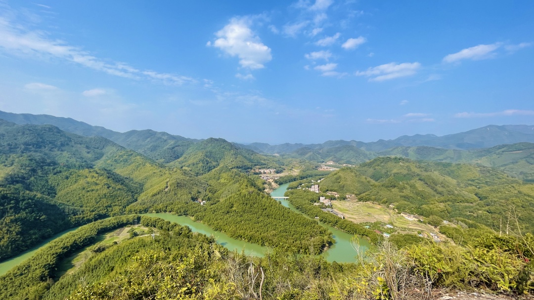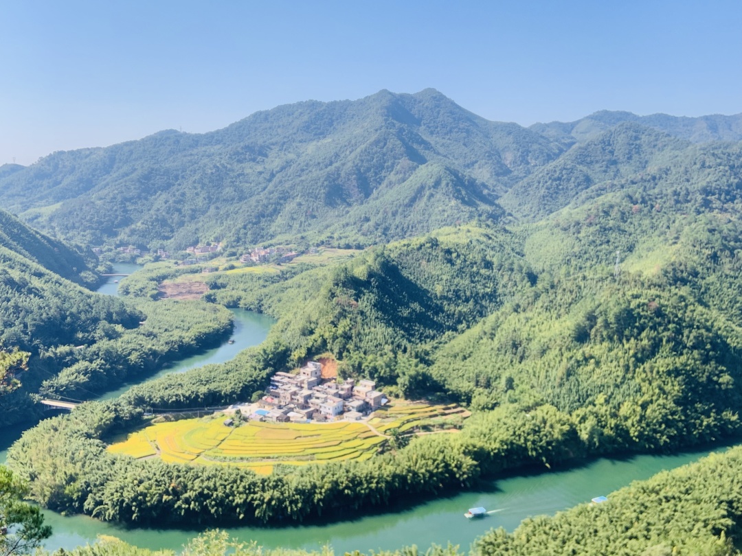 14:30 山顶风光无限,打卡拍照俯瞰古水河的九曲十八弯景色;(如遇天气不好,居于安全则不上山)