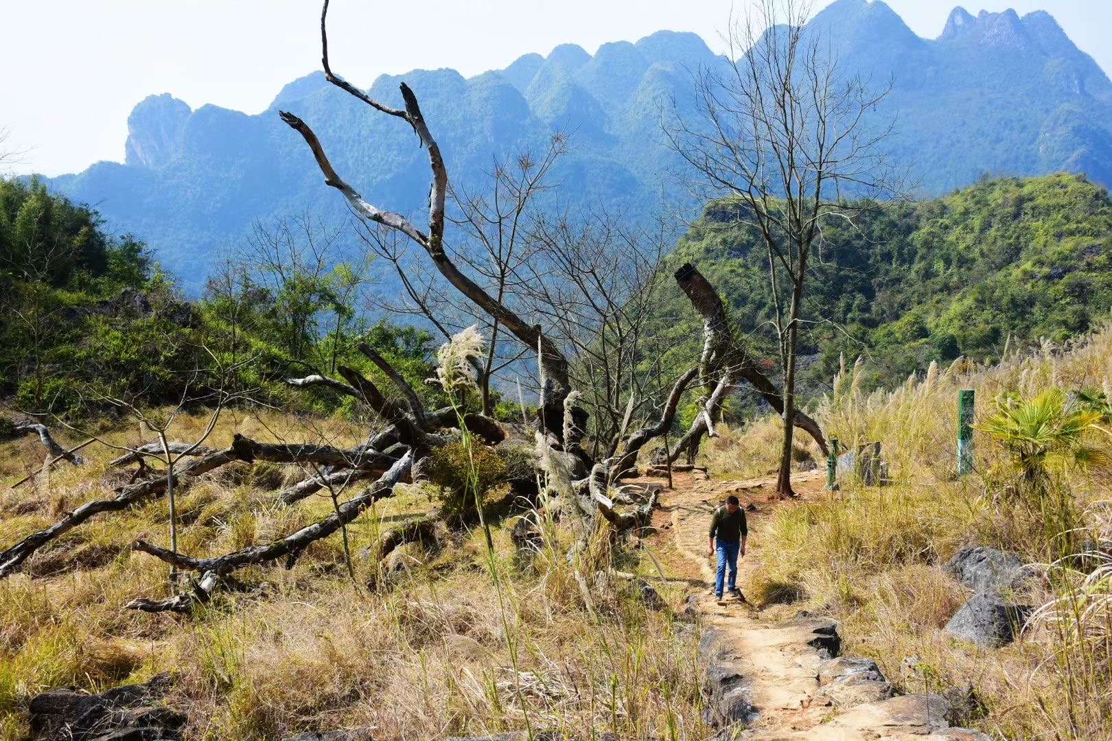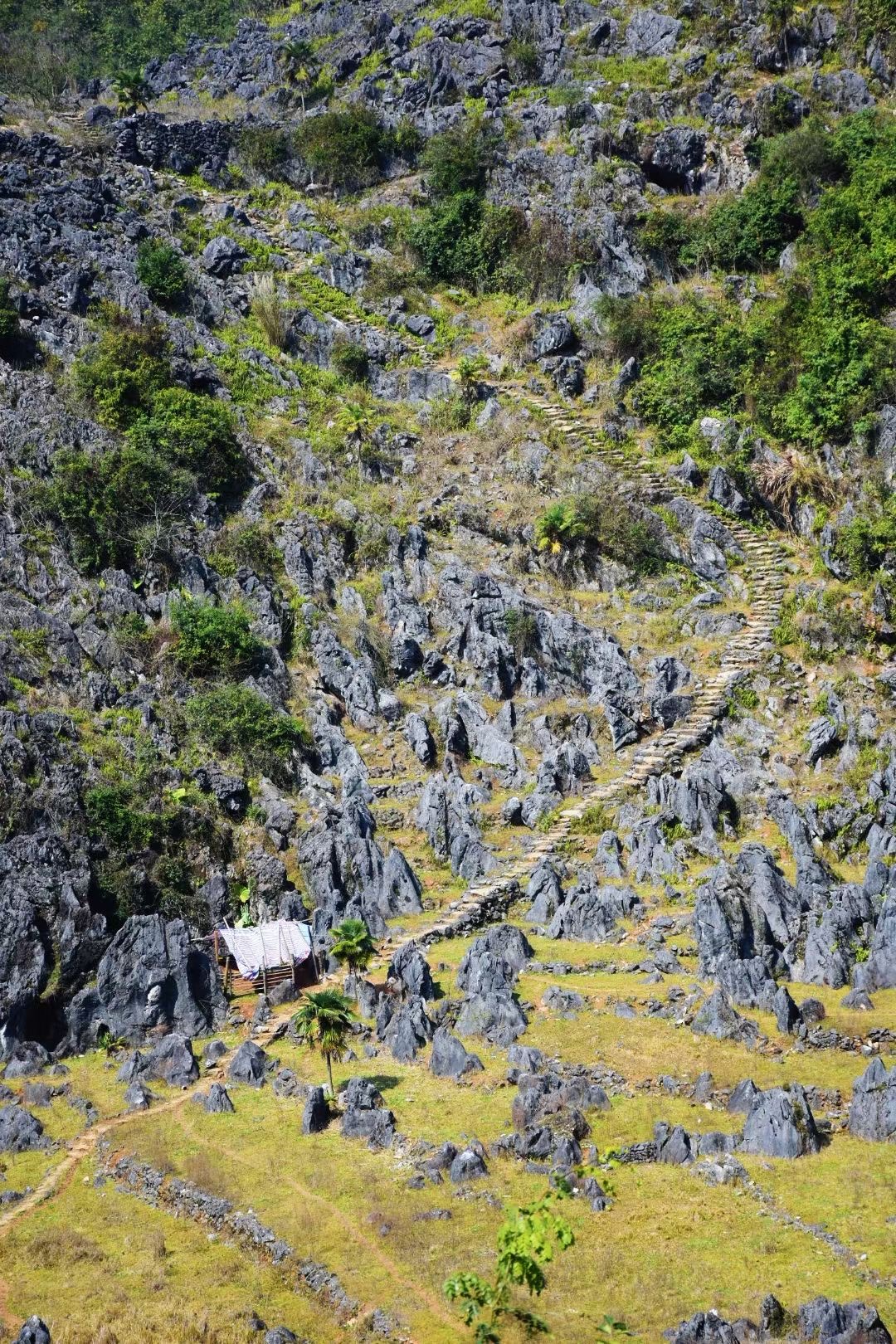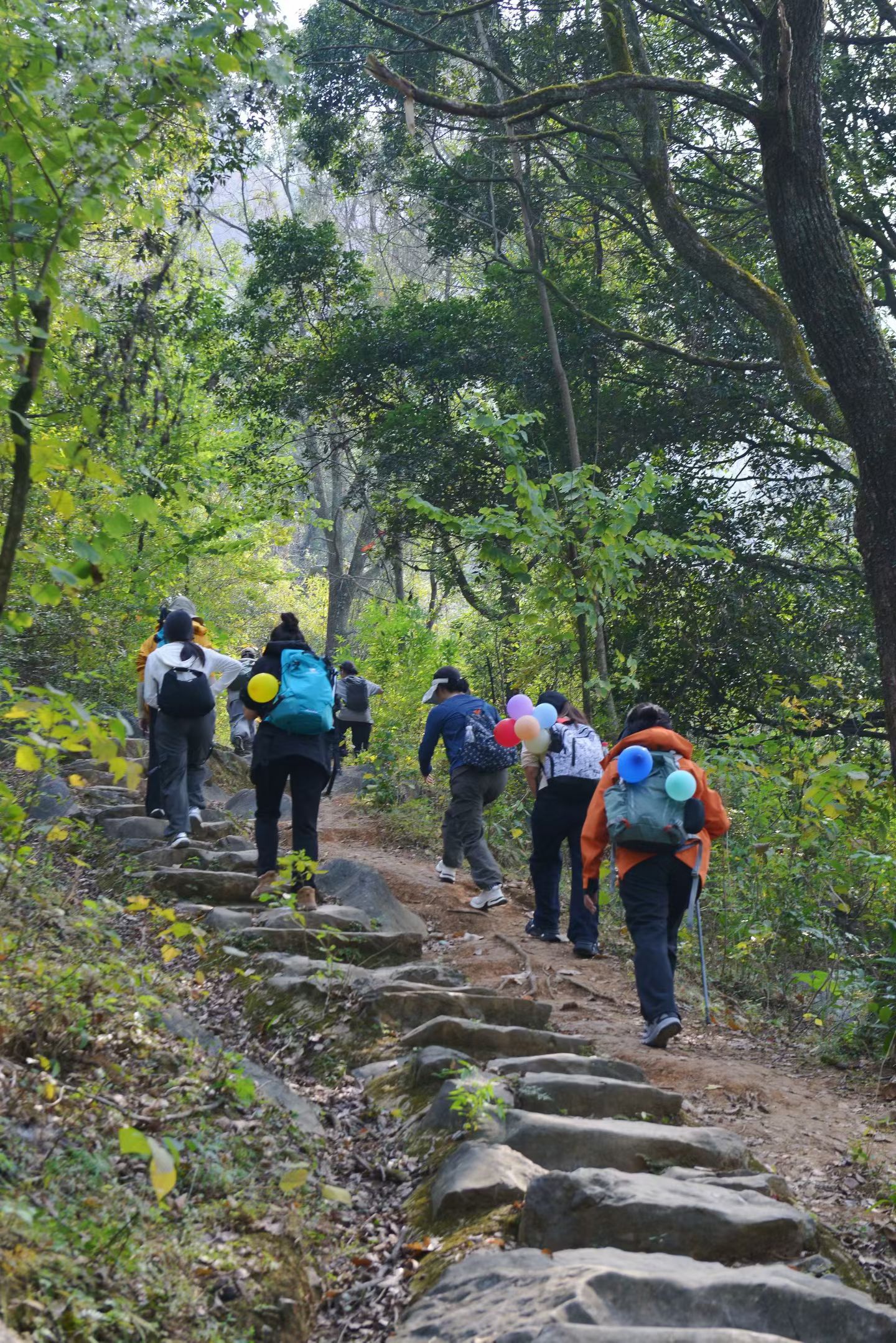 11:30 开始徒步登山,初期沿着古道台阶爬升,务必穿长袖衣裤、遮阳帽、手套,建议带登山杖。
