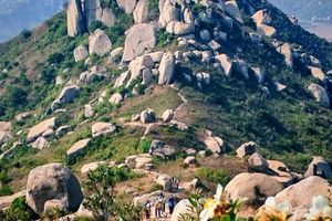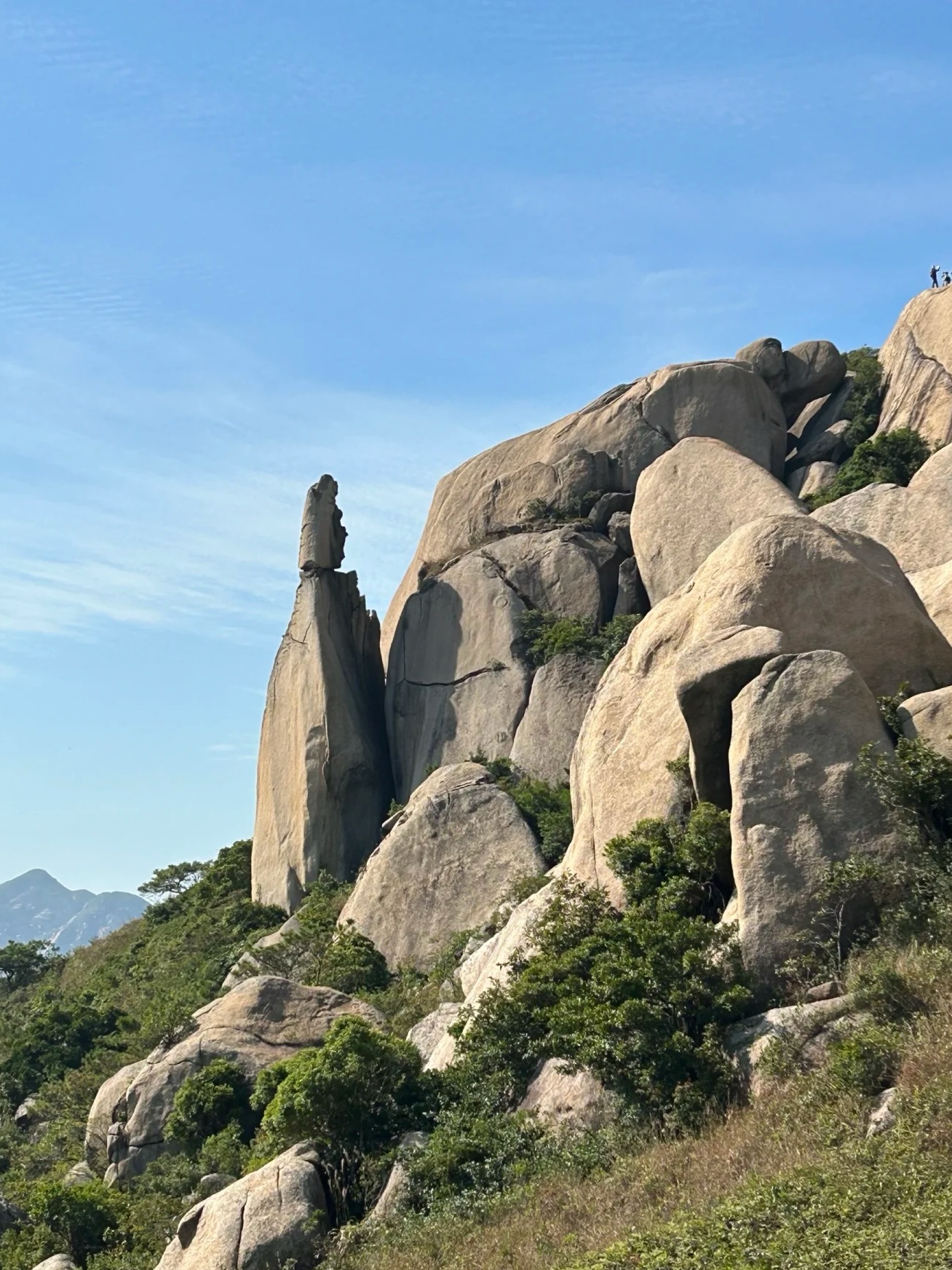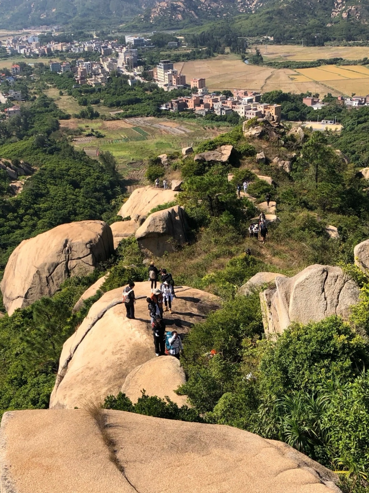 13:00 吃饱喝足,继续出发登山,一路近看奇石乱布,远观无边大海;