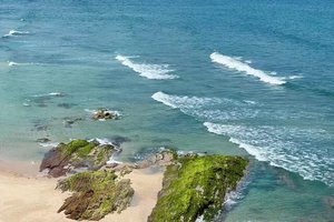 辽阔的大海、蔚蓝的天空、奇特的礁石,形成了现在独有的大自然的鬼斧神工。