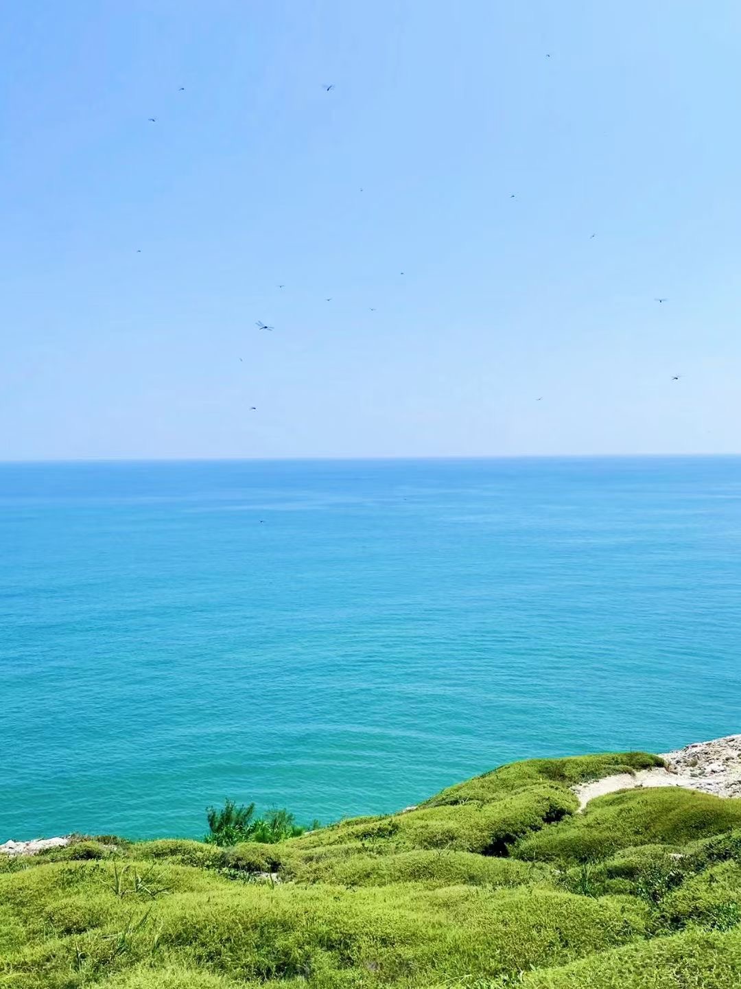 徒步穿越途中,需要翻过一些小山坡,可以在山腰和山顶眺望,大海的蔚蓝和壮阔尽收眼底。