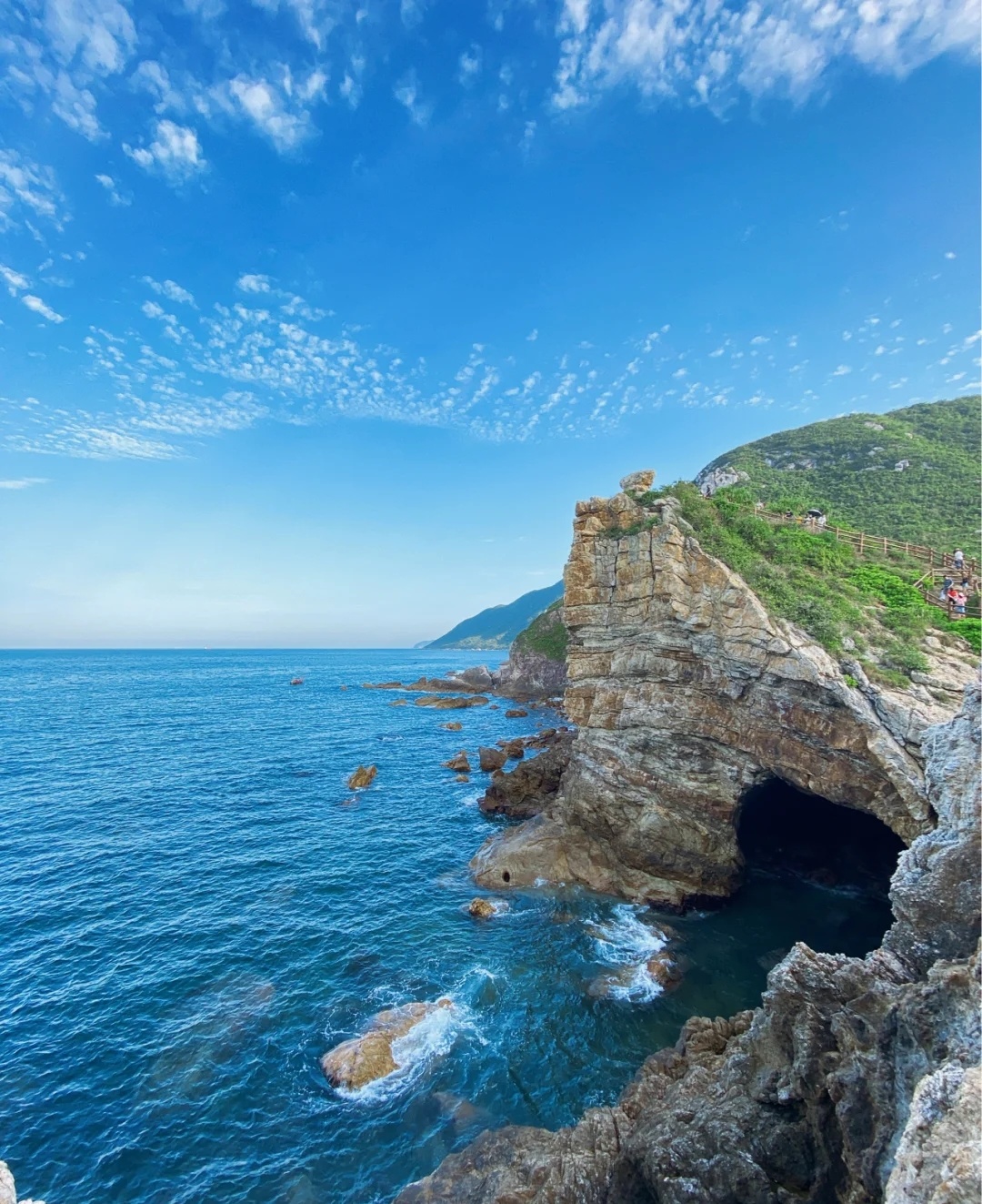 远可俯瞰大水坑湾、砾石滩、海蚀穴、鹿嘴岬角等海岸地貌