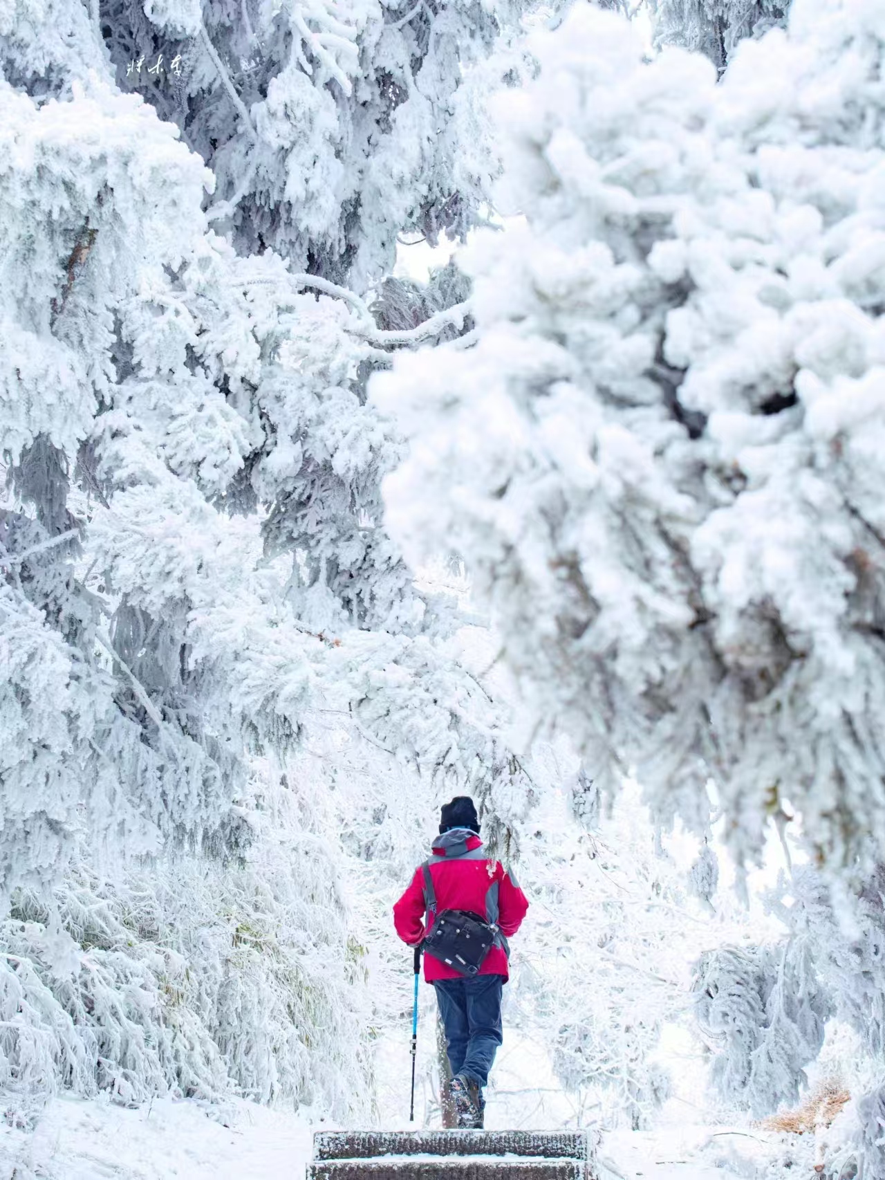 15:00左右到达南岳衡山领队带领大家热身后开始穿越山脊冰雪雾凇精华路线,前往半山亭,忠烈祠或延寿亭客栈。
