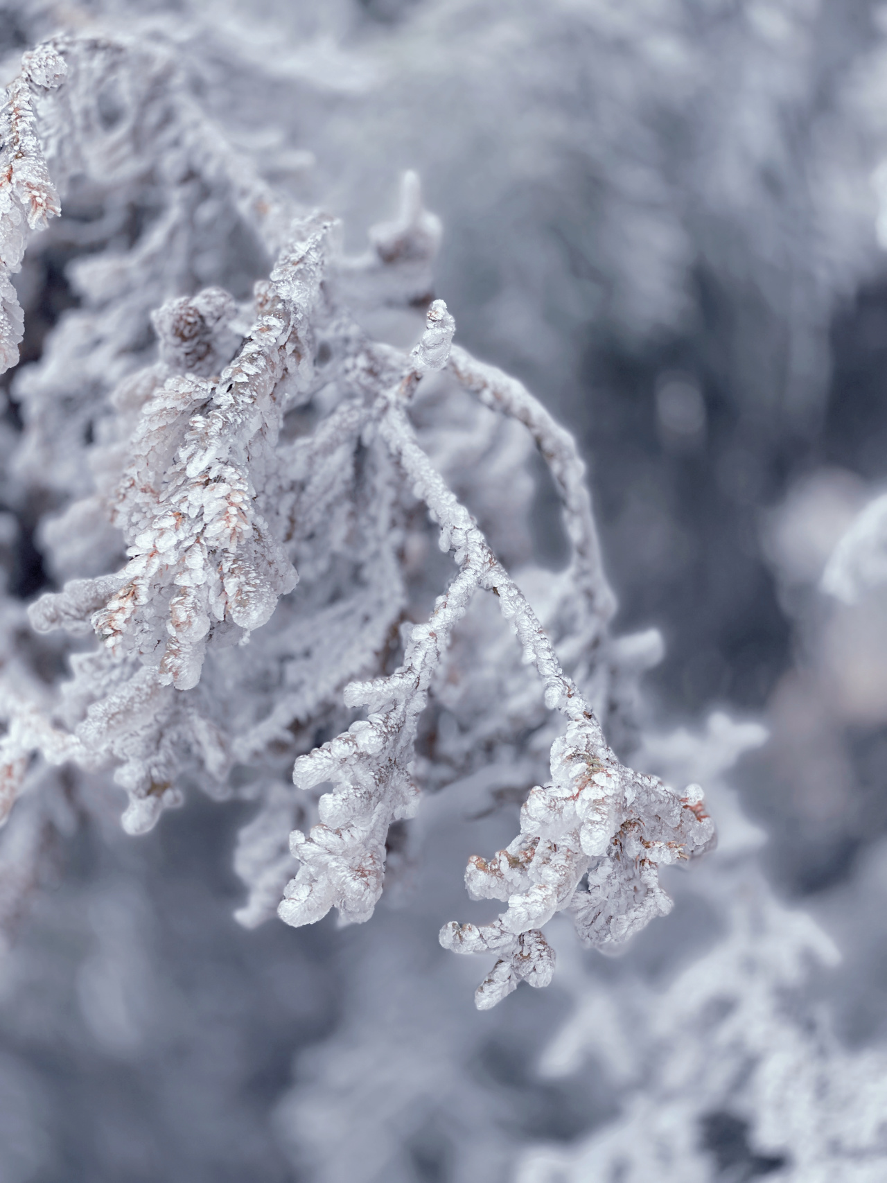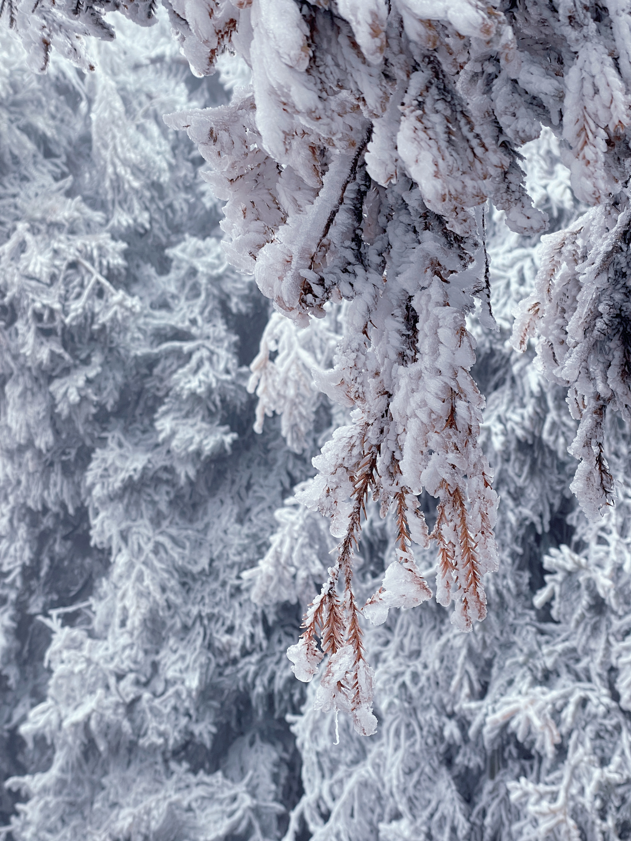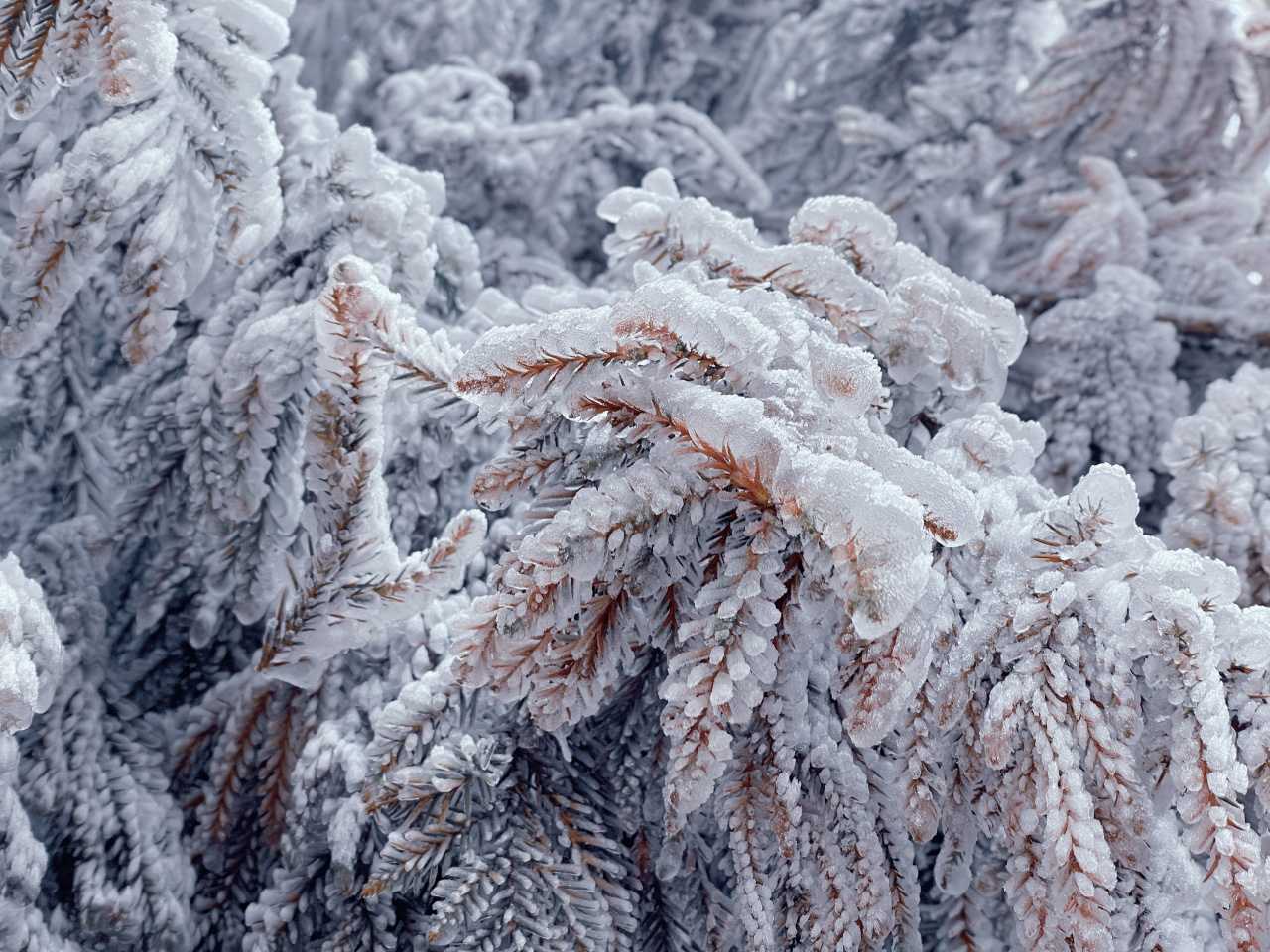 08:00 左右从祝融峰开始下山,一路游玩到南天门。沿途看晨光打在雾凇上,晶莹透亮....