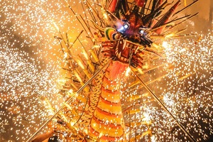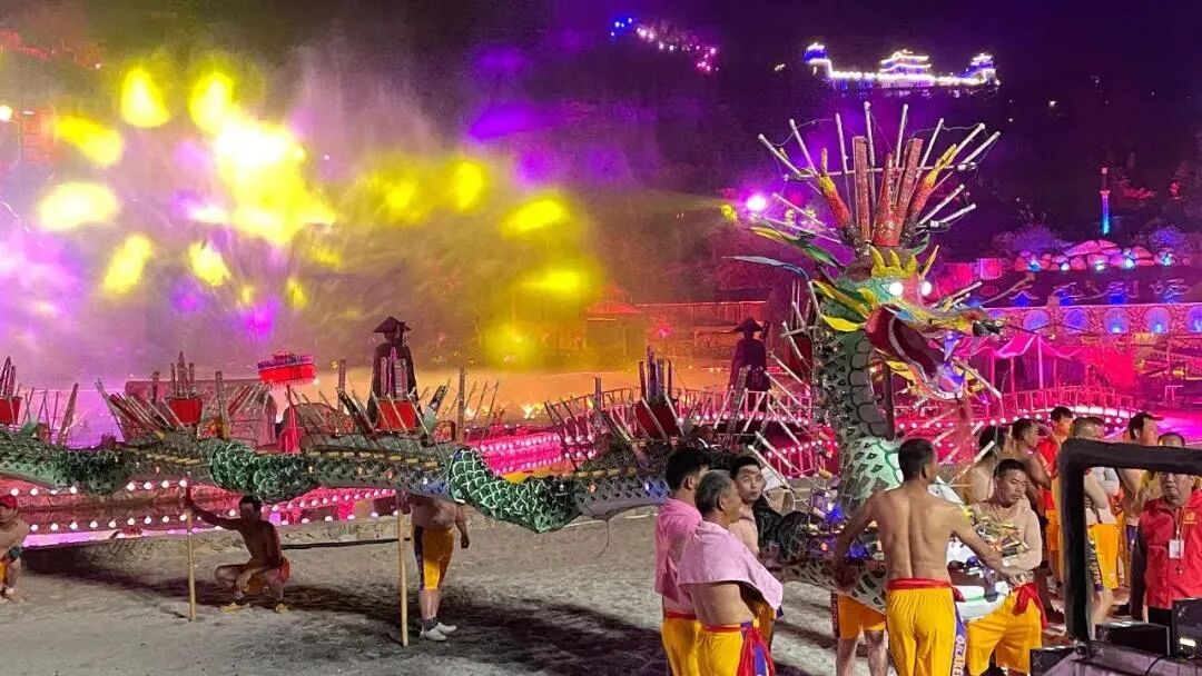 《千年火龙》演艺剧目采用水幕全息投影、威亚系统、裸眼3D等最新技术,将真人表演与视频特效进行整体策划创意及对位编排,形成“虚实结合”的舞台表现效果,生动展现了丰顺的千年火龙文化、千年客潮文化。