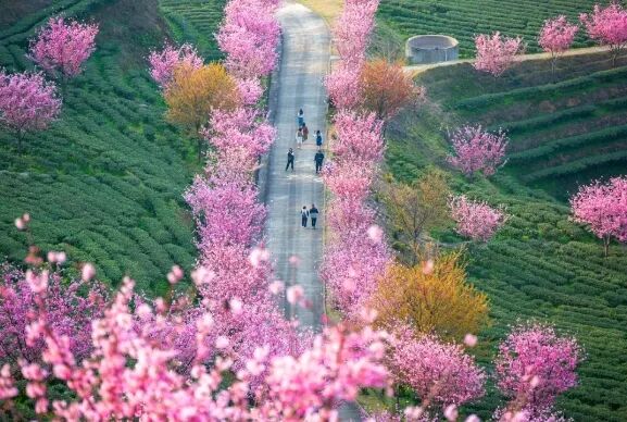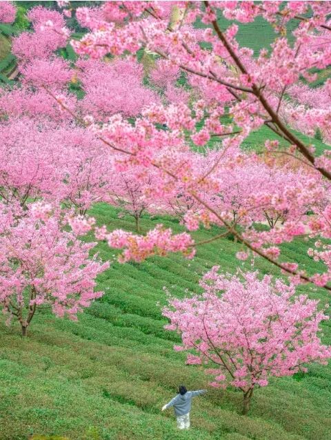 09:00 抵达那阴山樱花园,可以跟着领队漫步在那阴山花海间,漫山遍野的樱花,像是进入了宫崎骏的漫画世界里(需要自备干粮,樱花最美花期正是2月中旬-3月中旬)