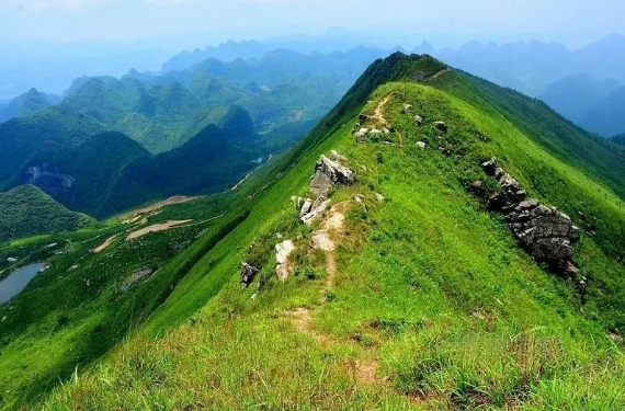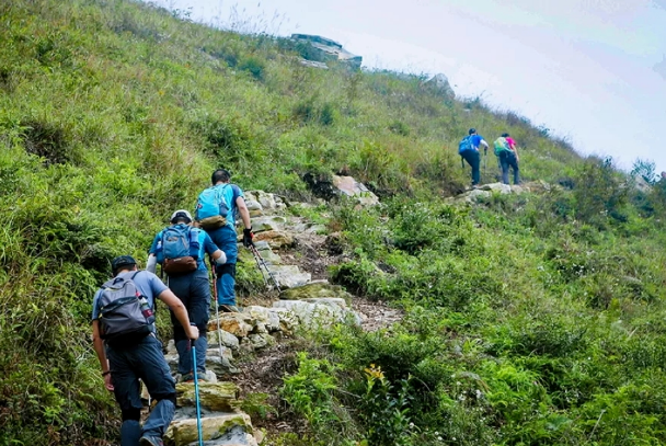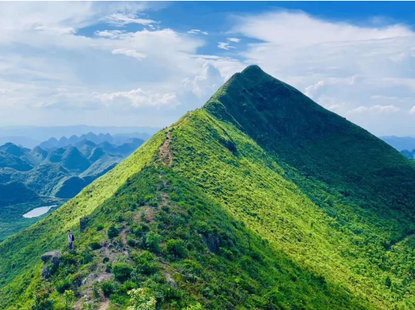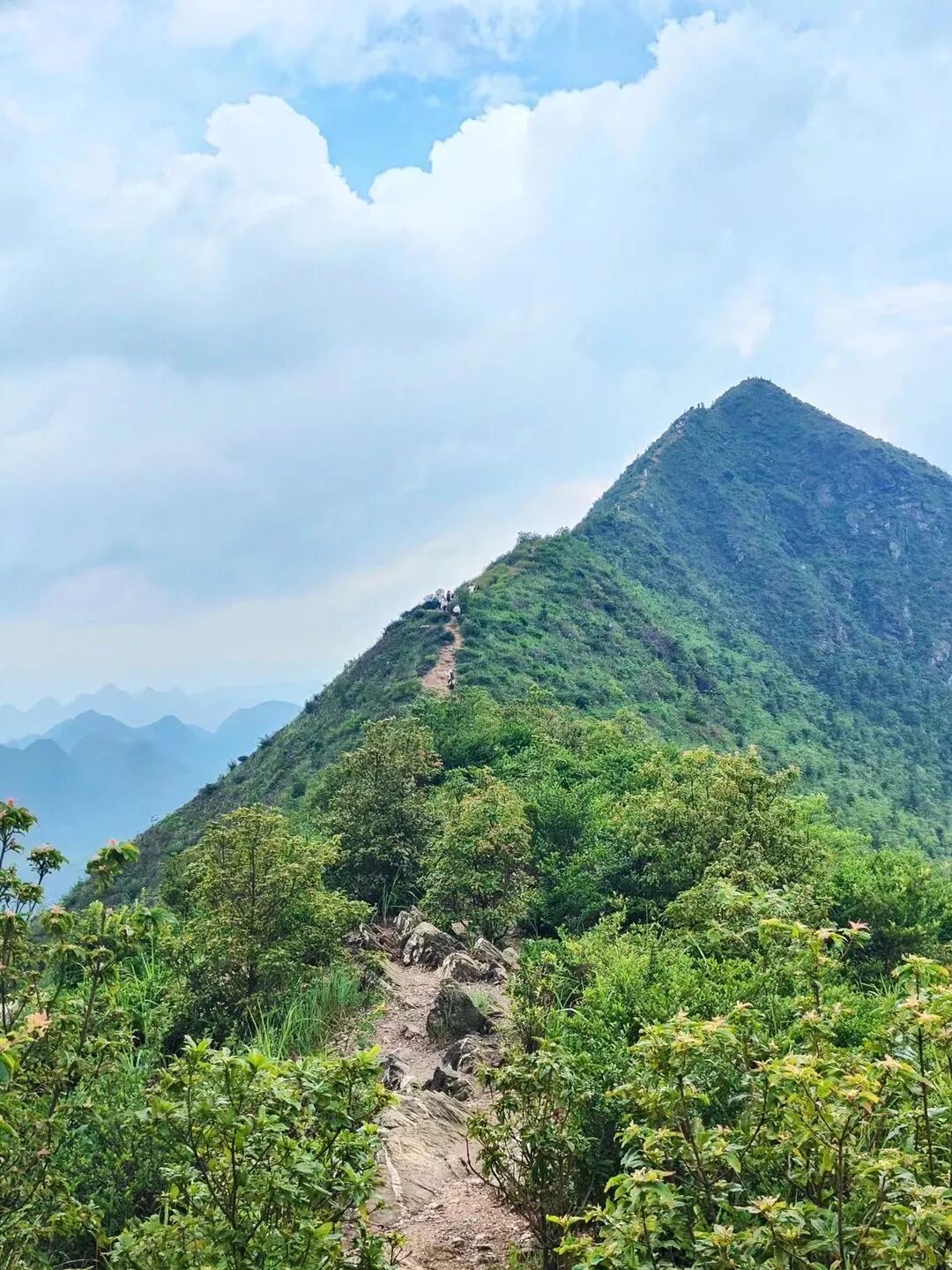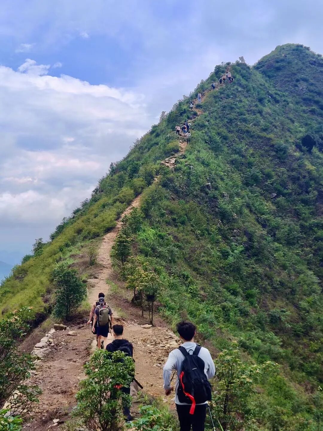 11:00 到达英德河坪村,下车进村庄,领队统一组织大家热身运动身体,然后开始徒步到达上山口,沿机耕路上山。翻山越岭到达精华段最美山脊线,享受刀锋行走的快感。
