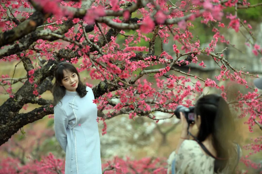 这里桃花与众不同,漫山遍野的桃花,矮枝横错,明媚鲜艳,每当你拿起相机随手一拍,就是一幅大气磅礴的水墨画。