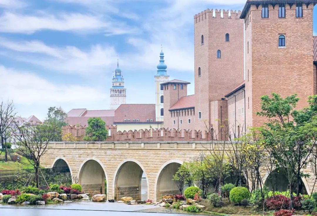 欧洲小镇是华为耗资100亿建成,占地1900亩,共分为8个建筑群,分别是格拉纳达、巴黎、维罗纳、克伦洛夫、弗里堡、勃艮第、海德尔堡、博洛尼亚。