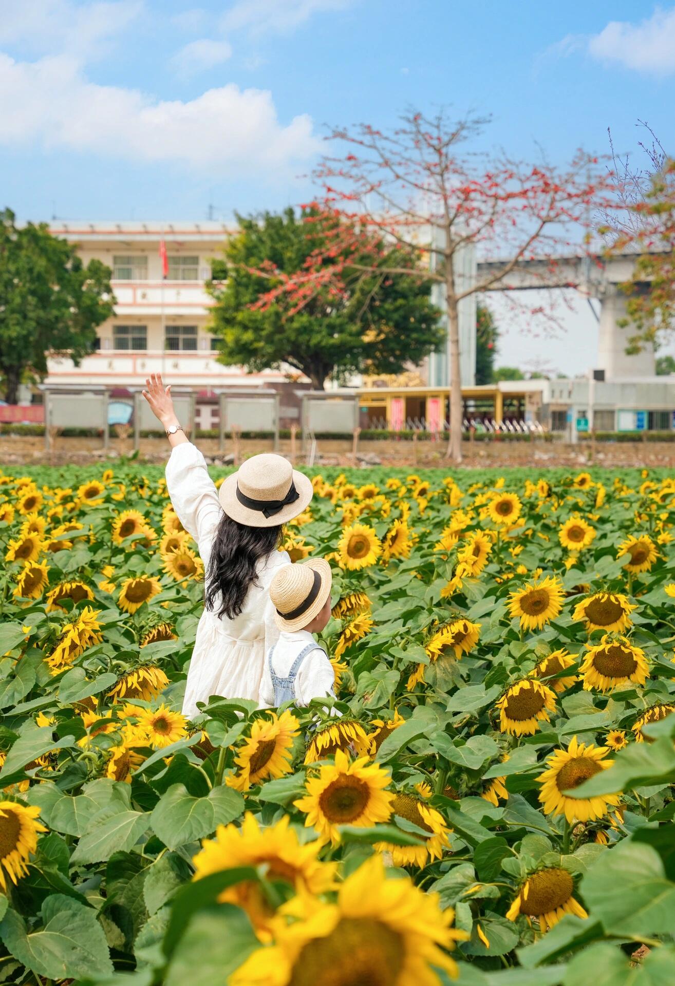 10:00 到达东莞向日葵基地附近,徒步前往基地拍照打卡,非常出片(附近有饭店)。