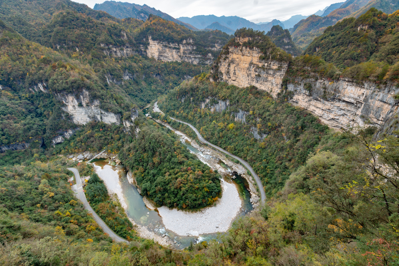 早饭后集合,我们将前往光雾山桃园景区的一大亮点【太极天坑】。河水自东向西将岩溶山体切割出一条S形的河道,俯瞰犹如太极图案,这正是它名字的由来。要看太极天坑的全貌,需要爬1000多个台阶,登山过程中最刺激的是飞云栈道,它像一条细细的带子悬挂在垂直的悬崖上,你可以尽情享受它的惊险刺激,同时遍览群山叠嶂的壮观。