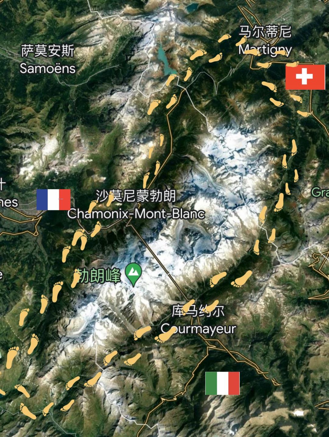 这一路上风光美不胜收:白湖常年被白雪覆盖,面向南针峰温柔而婉约,站在勃朗峰最佳观景台满眼尽是雪峰山色,而邻国意大利在旅途的某一刻变得那样容易到达,徒步的艰辛和汗水日后也都会变成美好记忆.